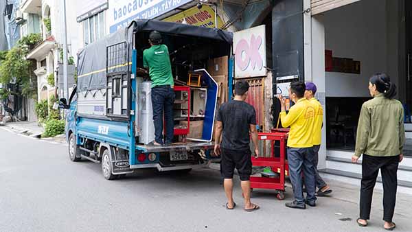 Di chuyển cẩn thận đồ đạc ra xe tải. Sau đó sắp xếp gọn gàng và khoa học, giúp tối ưu không gian xe, tránh phát sinh nhiều chuyến. Đồ đạc sẽ được vận chuyển đến nhà mới an toàn và nhanh chóng.