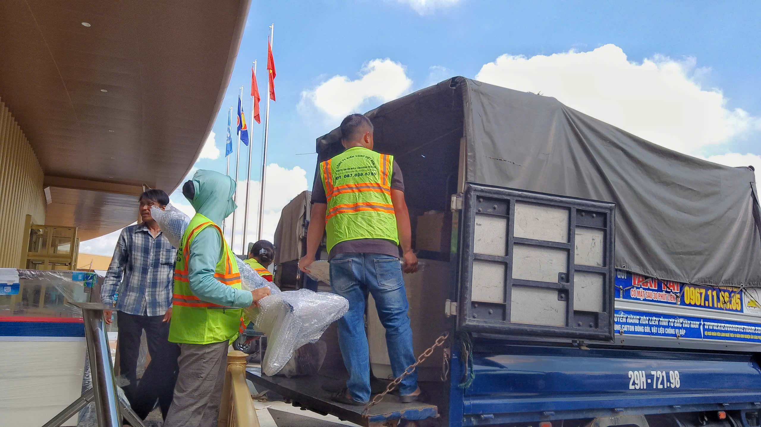 Di chuyển cẩn thận đồ đạc ra xe tải. Sau đó sắp xếp gọn gàng và khoa học, giúp tối ưu không gian xe, tránh phát sinh nhiều chuyến. Đồ đạc sẽ được vận chuyển đến nhà mới an toàn và nhanh chóng.